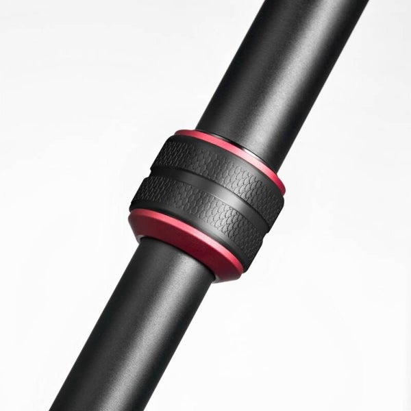 Dankzij de draaivergrendeling kun je gemakkelijk alle secties tegelijk openen en sluiten met één enkele handbeweging. Hierdoor kun je het camerastatief heel snel bedienen, zodat je die cruciale opnamen veel sneller kunt maken. De vergrendelingen nemen ook minder ruimte in dan traditionele hendels, wat het compacte ontwerp van het statief ten goede komt.