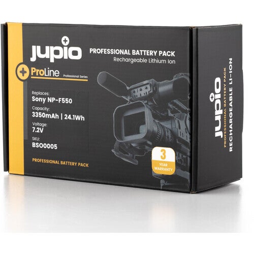 De ProLine NP-F550 3350mAh L-Series-Type accu van Jupio is een hoogwaardige accu met een hoge capaciteit die compatibel is met geselecteerde Sony camera's en een reeks andere apparaten. Deze compacte batterij heeft een uitgang van 7,2 V en een capaciteit van 3500 mAh.