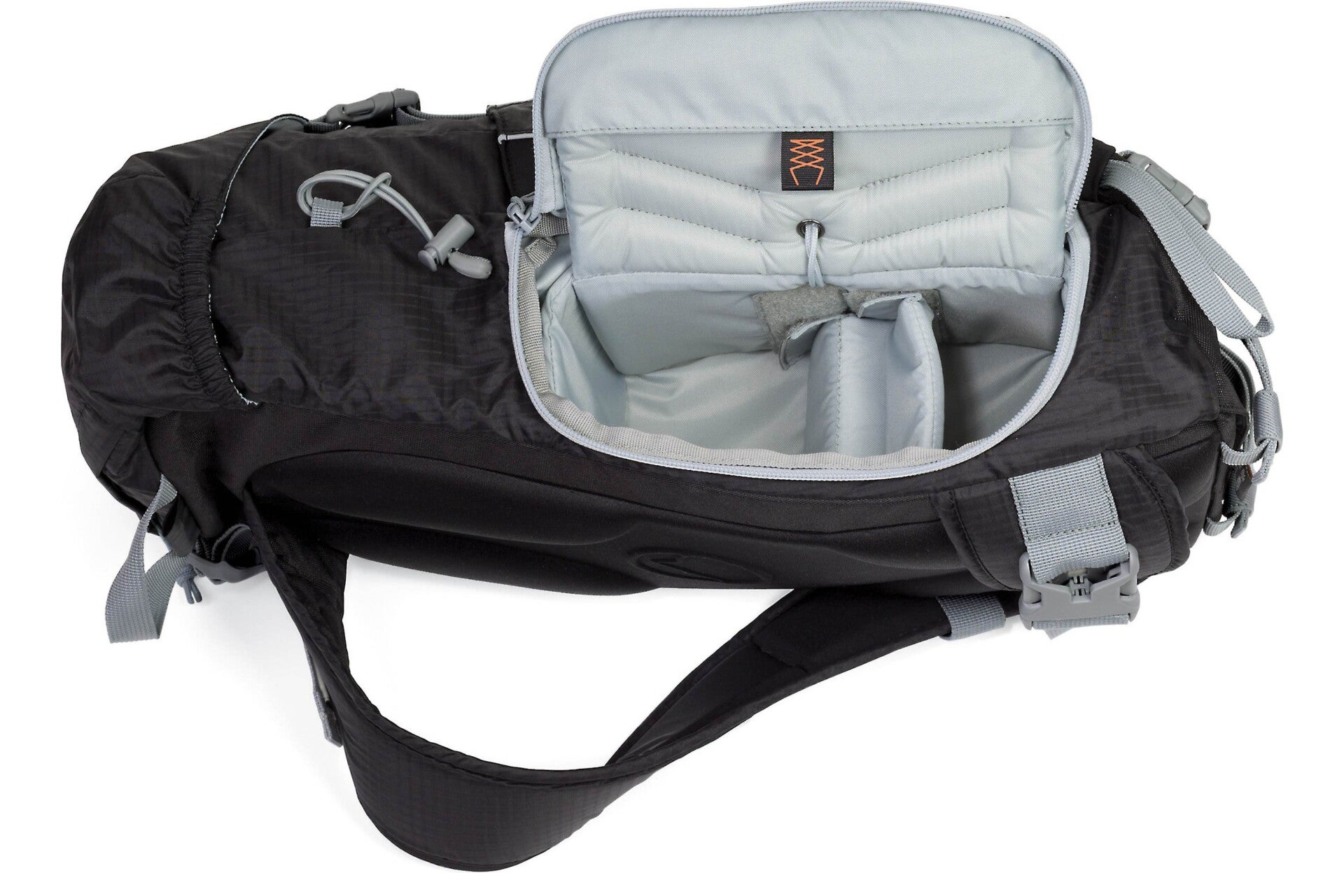 De sling bag, genaamd Photo Sport Sling 100AW, heeft alles wat de rugzak heeft, met uitzondering van het speciale vak voor het waterreservoir. Bovendien is het comfortabele rugzakharnas vervangen door het snelle sling bag-systeem, wat geliefd is bij fietsers.