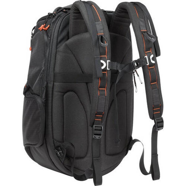De zwarte Revolver-8 PL Backpack van Kata zorgt voor een innovatieve benadering van rugzakken. Met zijn capaciteit voor een DSLR met grip en standaardlens plus vier extra lenzen (zoals een 70-200mm f/2.8, 16-35mm f/2.8, 50mm f/1.4 en 100mm macro), en maximaal een 15,4" laptop, is de unieke eigenschap van deze rugzak zijn interieur draaiende lens