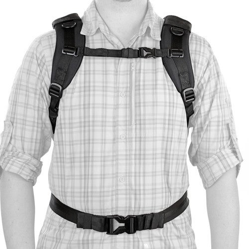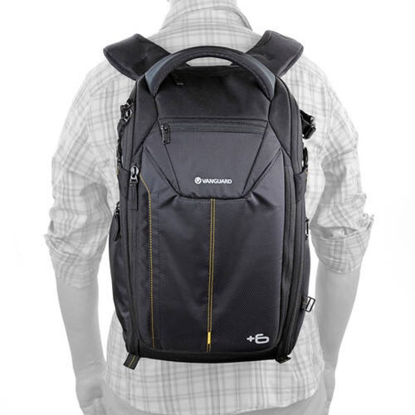 De zwarte ALTA RISE 45 rugzak van Vanguard heeft een gestroomlijnd vorm-volgt-functie ontwerp en biedt ruimte aan een Pro DSLR, 4-5 lenzen tot 24-70 f/2.8, een flitser, bijbehorende accessoires en een laptop of tablet. Om kleinere of grotere ladingen aan te kunnen, biedt de +6 revolutie gebruikers de keuze om de opslagruimte uit te breiden of te verkleinen met één gemakkelijke ritsbeweging rond de ALTA RISE 45. Een verscheidenheid aan zakken, waaronder een verborgen achterzak voor waardevolle spullen, biedt meerdere opbergmogelijkheden. Aan de zijkant van de rugzak zit een vak met een compressieband erboven voor het bevestigen van een klein statief, accessoire of waterfles.